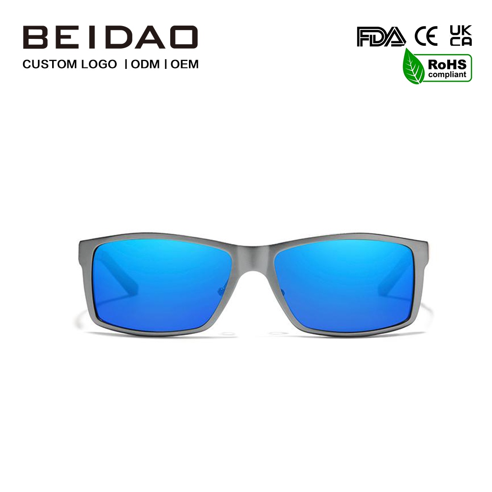 Designer blå polariserade rektangulära utomhussolglasögon för män